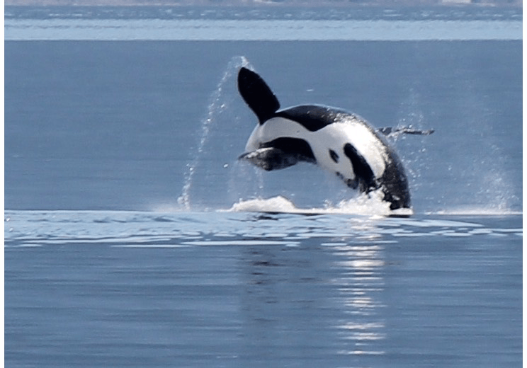 - Breaching Orcas (transient pod, or mammal eaters)