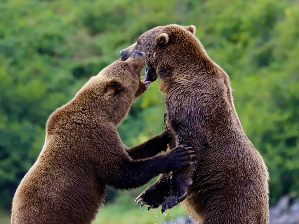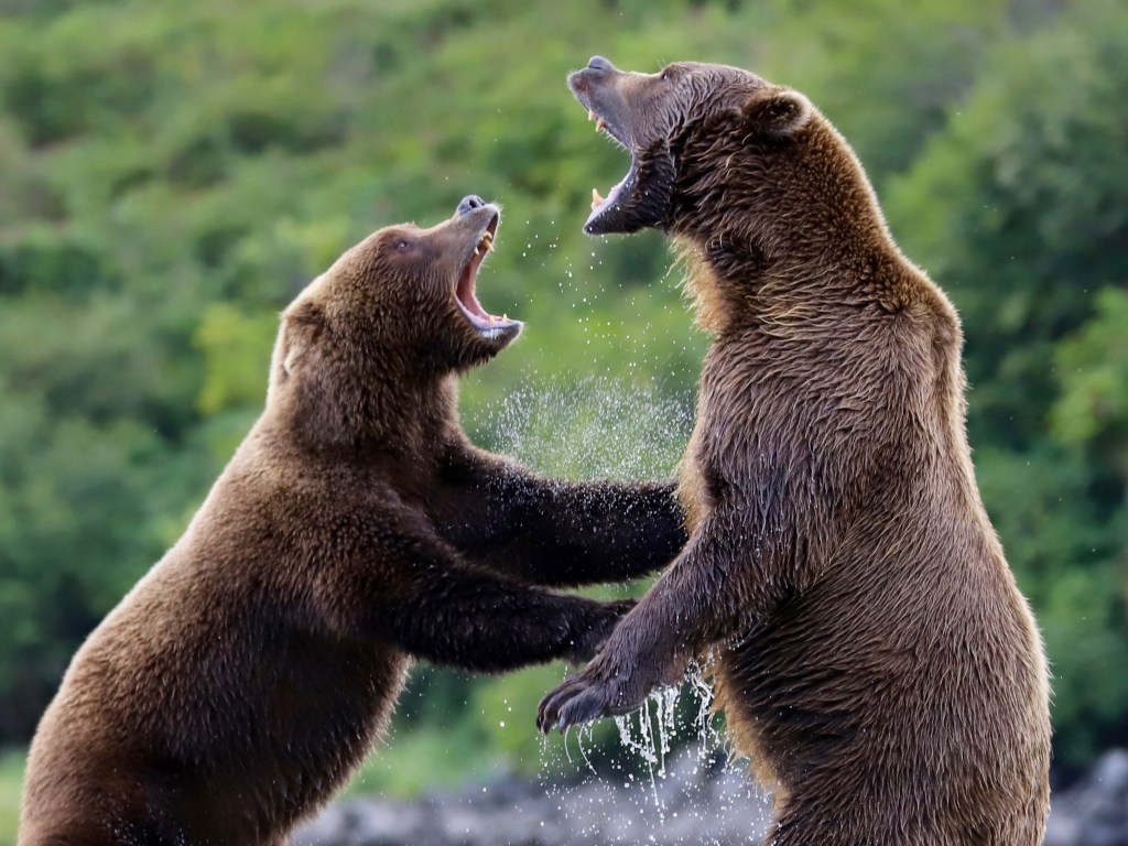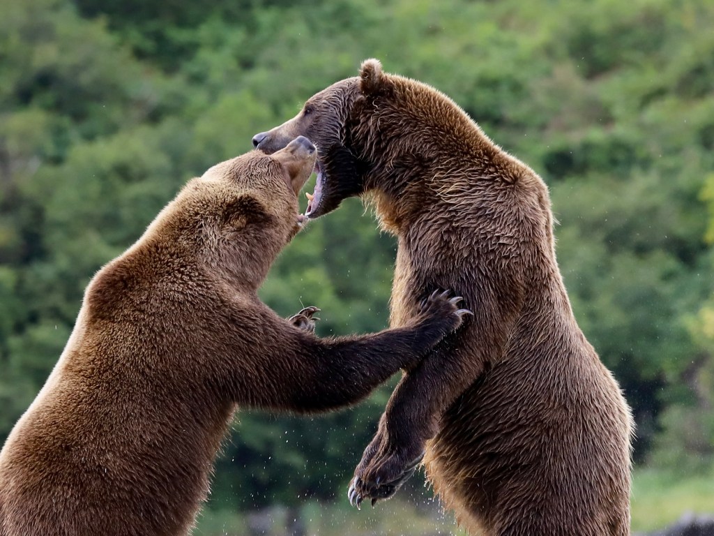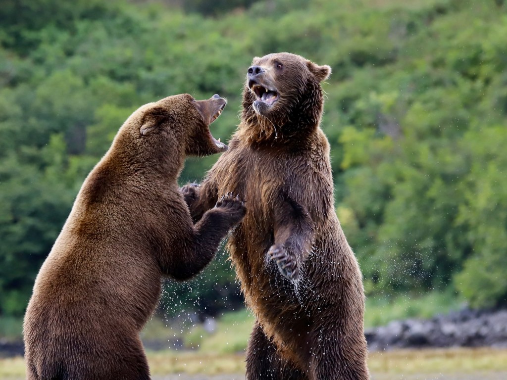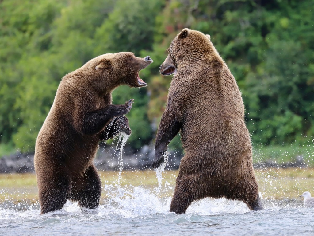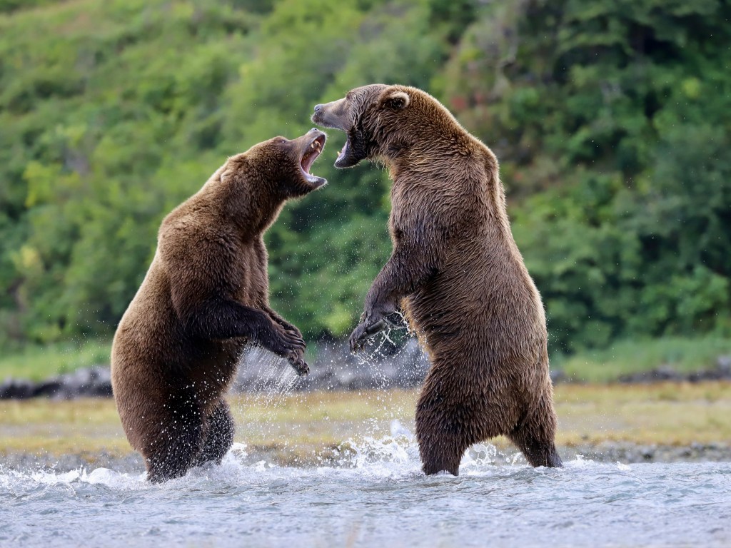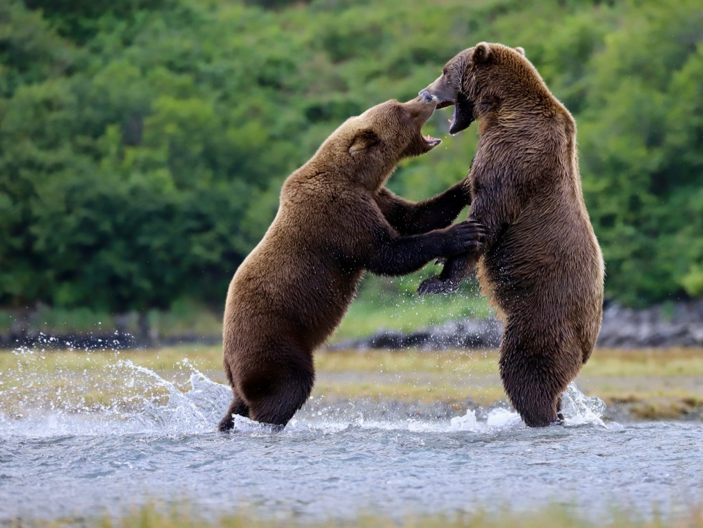 These two lovebirds were on what could only be described as a date that’s longer than a Netflix binge. Brown bears, it turns out, have a mating routine that rivals a Shakespearean drama. The bigger bear, being the bruin of the hour, clearly flubbed something on this fishing expedition, triggering a symphony of growls and a dramatic slap! Our girl decided she was done with dinner and took off like a furry rocket, but not before throwing a glance back, as if to say, “No hard feelings, right?” She dodged the lower half of our group with Olympic precision! The gentleman bear stopped dead in his tracks when I stepped out ready to flash my flare, making sure he got the memo that this wasn’t a game of “Red Rover, Red Rover, send Bob the bear right over!” Luckily, one of our clients was there to catch the whole fiasco on his iPhone—while Star was chillin’ up top snapping pics and I was holding the fort at the bottom. Just another day in Katmai, where even bears face the drama of love!