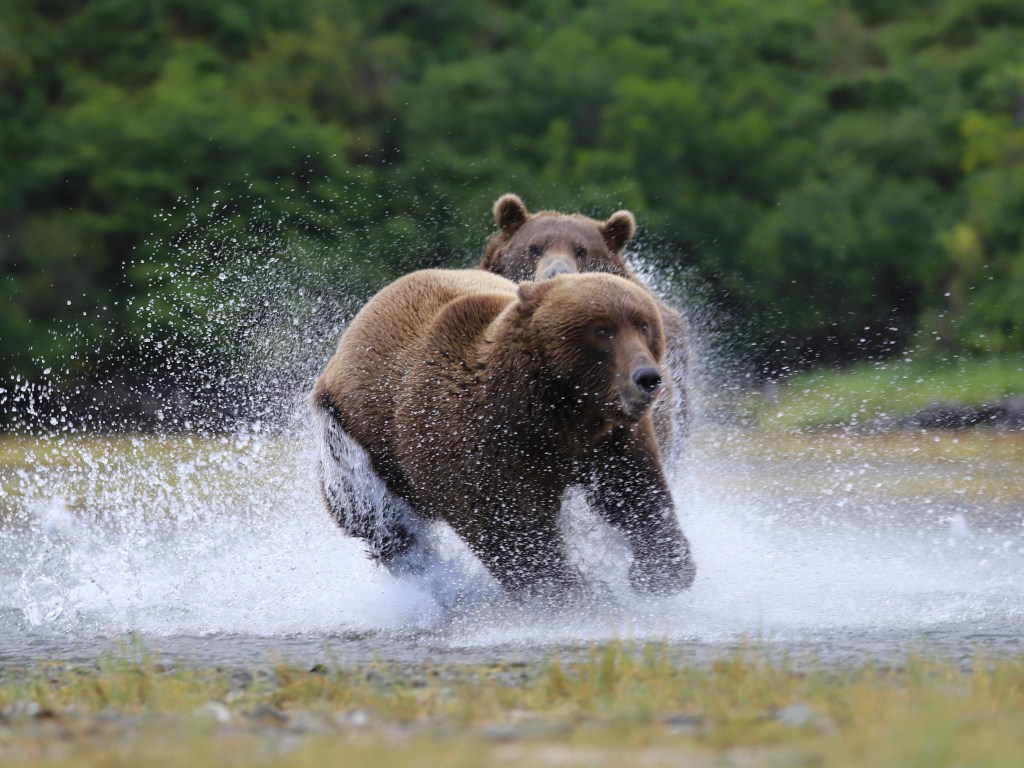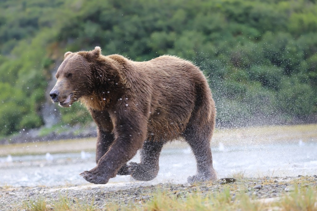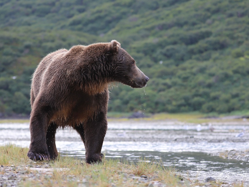 Nestled within Amilak Bay lies a narrow channel that cheekily opens up into Geographic Harbor, a place where high mountains give a dramatic backdrop to an expansive tidal flat area – it’s like nature’s version of an all-you-can-eat buffet! Here, bears can be seen clamming and fishing for salmon, which they seem to treat as the main course of a gourmet meal. We’ve spotted as many as 40 bears sunbathing on the flats at once, although on a good day, you can count a dozen or more just lounging around like it’s a bear spa day. And don’t be surprised if you catch a glimpse of wolves lurking near the brush line, possibly contemplating whether to join in on the bear party or just order takeout!